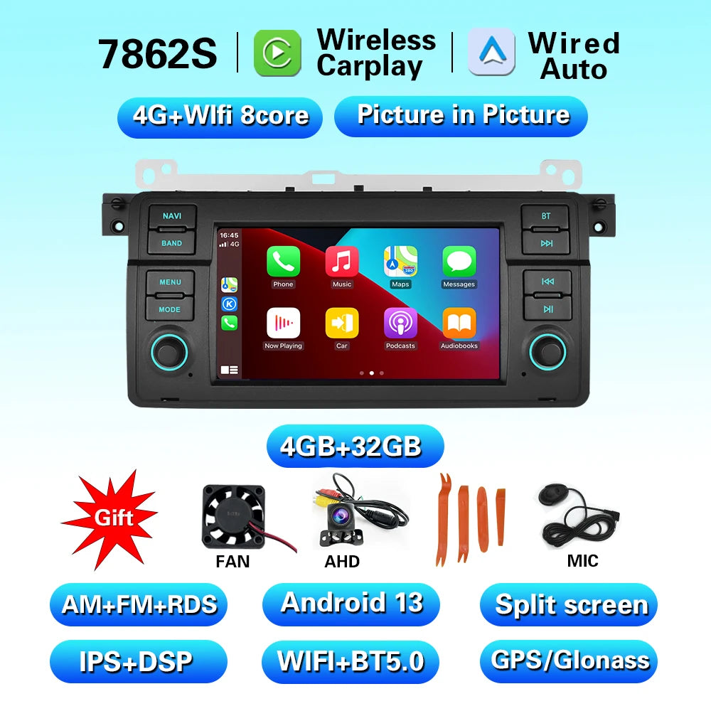LELV FM RDS car video GPS Navigation for for BMW E46 WIFI 4G split-screen auto radio carplay